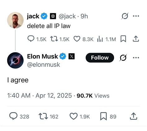 Dorsey and Musk may have lit the match, but the real question isn’t whether IP law should exist, it’s how we make it stronger, smarter, and fairer for the next wave of innovators.